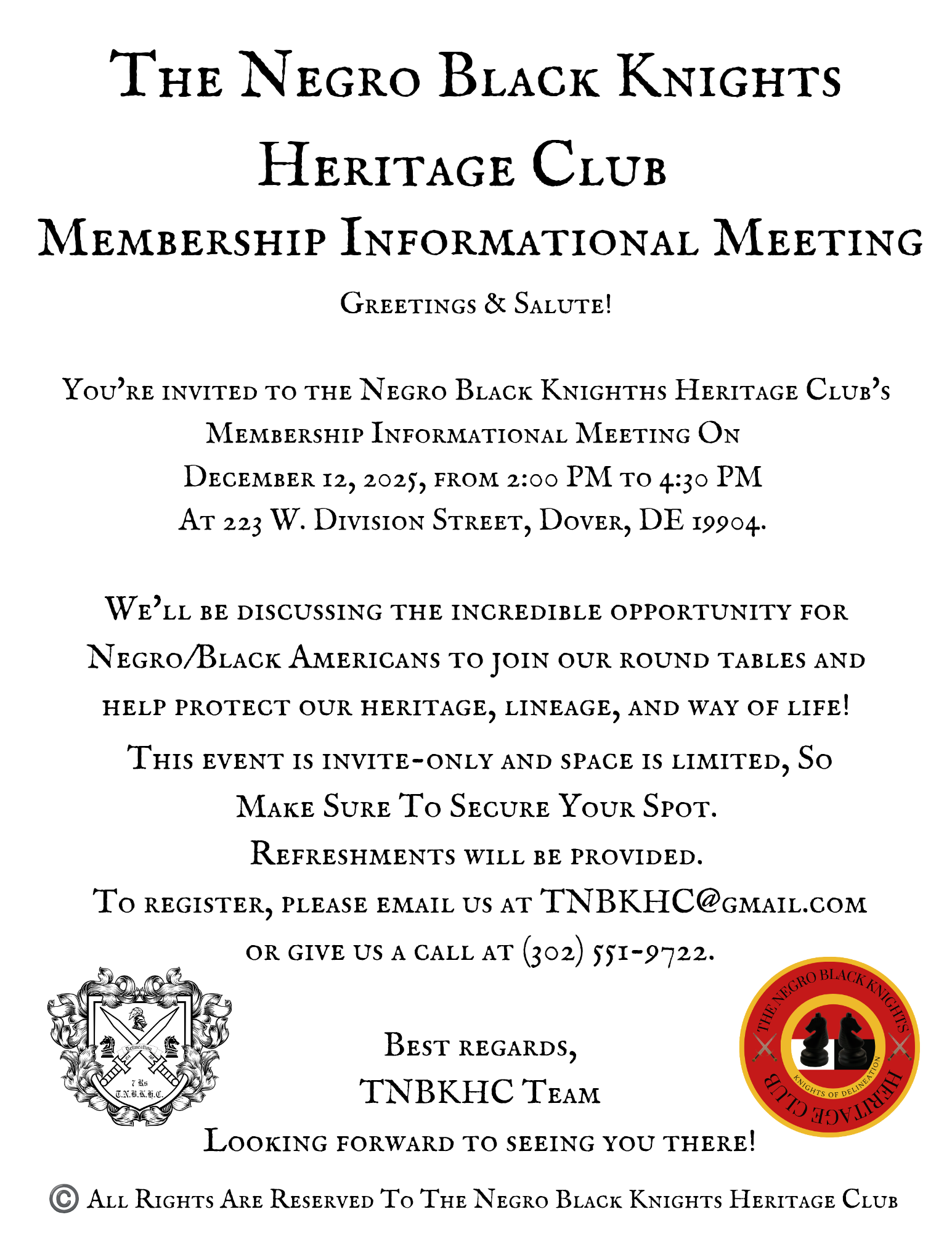 ©️All Rights Are Reserved To The Negro Black Knights Heritage Club.